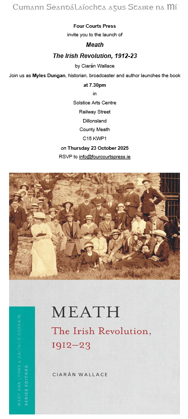 Meath: The Irish Revolution, 1912-23 – book launch 7.30pm 23rd October 2025, Solstice Centre Navan – MAHS
