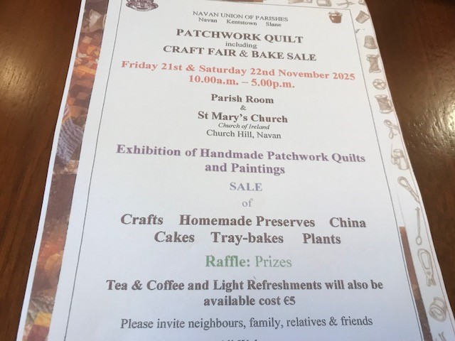Patchwork Quilt, Craft Fair & Bake Sale: 21st-22nd November 2025 – St. Mary’s Church, Navan