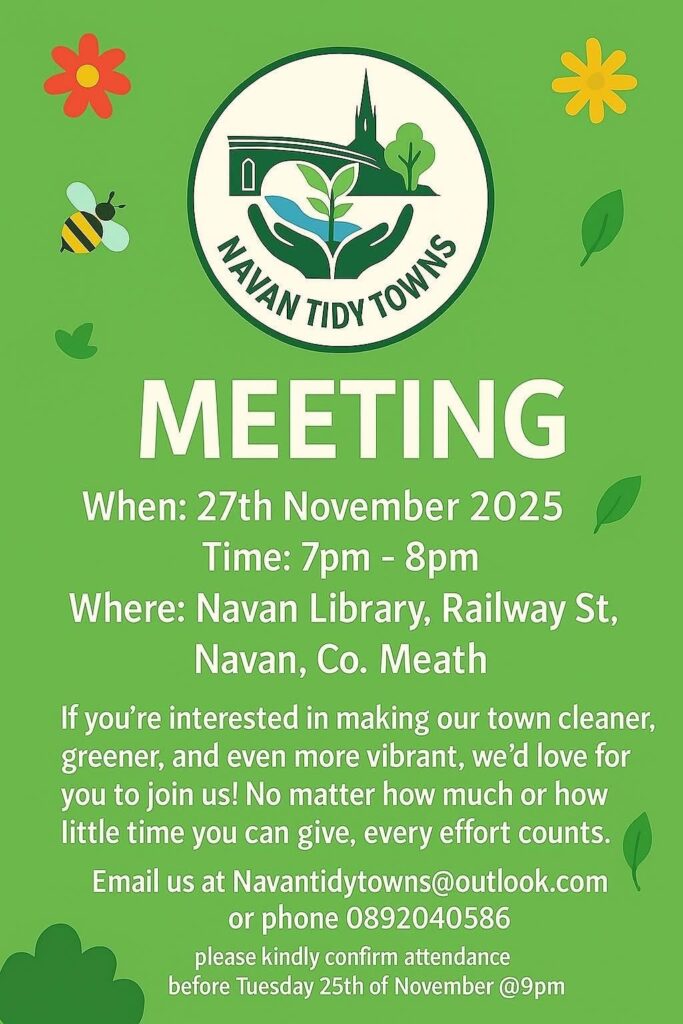 Navan Tidy Towns: Meeting – 27th November 2025 7pm, Navan Library