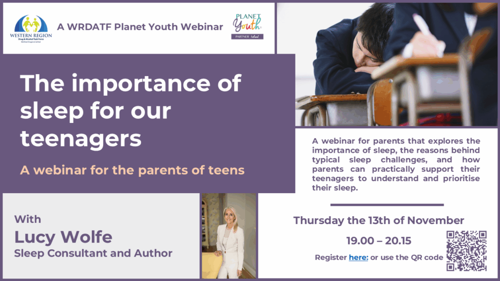 | The importance of sleep for our teenagers | Thursday 13th November 2025 19:00 – 20:15 | https://wrdatf.ie/training-details-awareness-week.php?ID=20 |