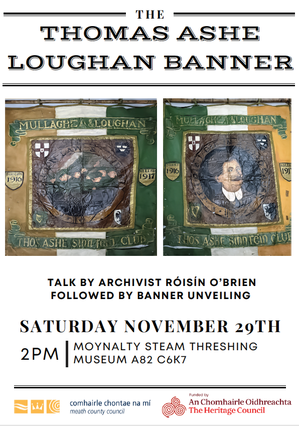 The unveiling of the Thomas Ashe banner after extensive restoration works will take place in the Moynalty Steam Threshing Muesum at 2pm on Saturday 29th of November.