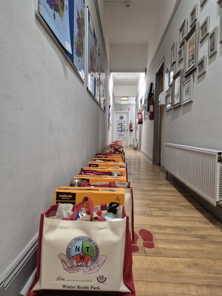 A total of 50 Winter-Ready Packs have been assembled through a collaborative effort between our young Traveller group and our Men’s Shed project. Each pack includes essential items to help households stay warm, safe, and connected during severe weather conditions: a Thermos flask, single-hob gas camping ring, battery torch, hot water bottle, ground-frost salt shaker, warm blanket, and battery-powered radio.