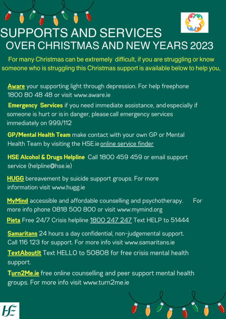 For more information on supports over Christmas please click this link: https://turn2me.ie/services/support-groups/
