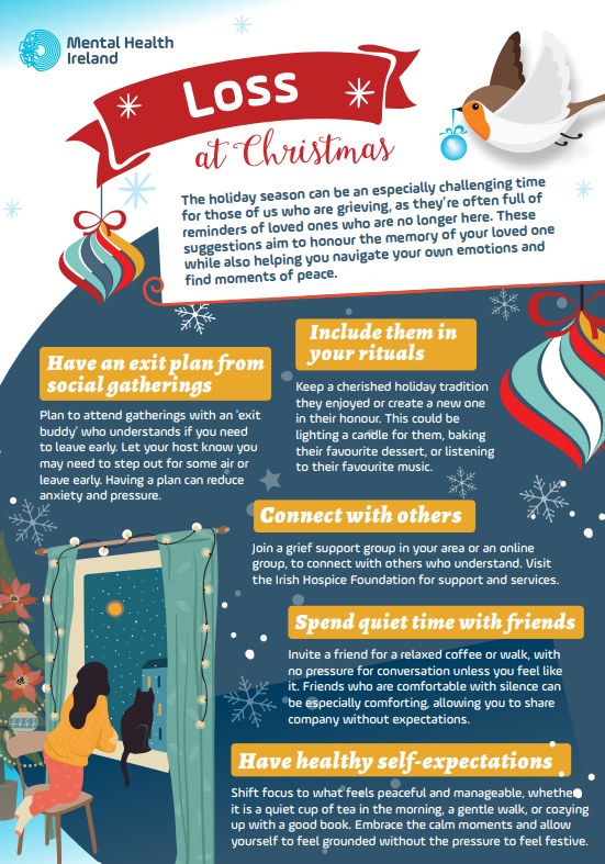 Turn2Me provides free, professional mental health services online, including free counselling sessions, support groups, and helpful tools like guided meditations and mood tracking. They have daily support groups online over the Christmas period on topics such as family issues, bereavement, feeling alone, feeling down to name a few. These services are available to anyone in Ireland, offering a lifeline to those who may feel overwhelmed by the holiday season. More details can be found on their website www.turn2me.ie