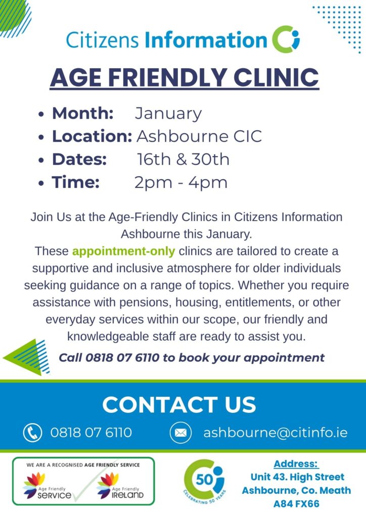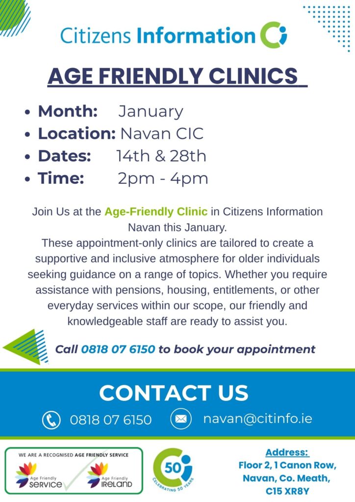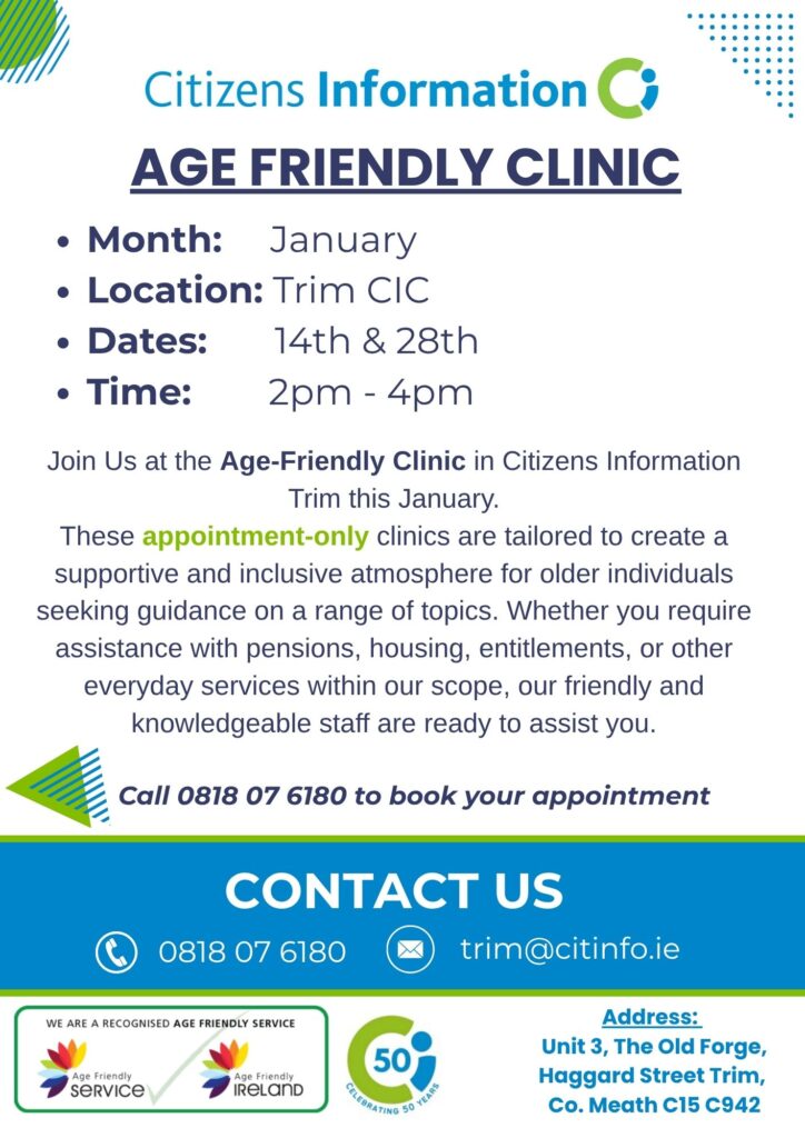 Meath Citizens Information Centres: Age Friendly Clinics in January 2026 – Ashbourne, Navan, Trim