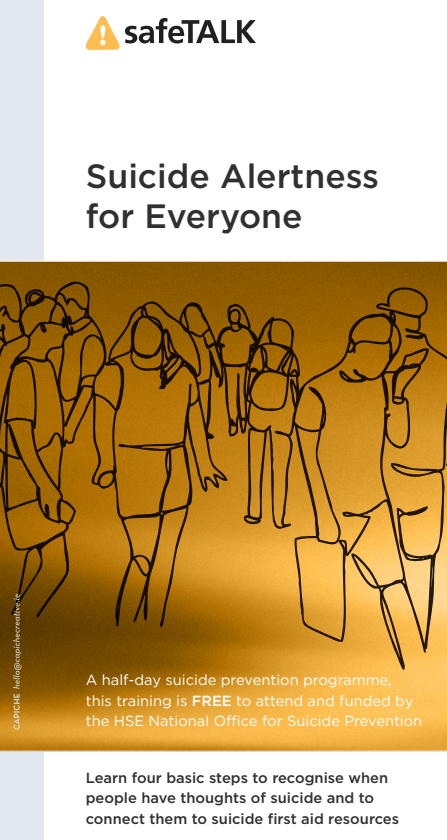 Details & registration here: Open To All: SafeTALK (Suicide Alertness For Everyone) – Kells Family Resource Centre, Co. Meath – Booking by Bookwhen