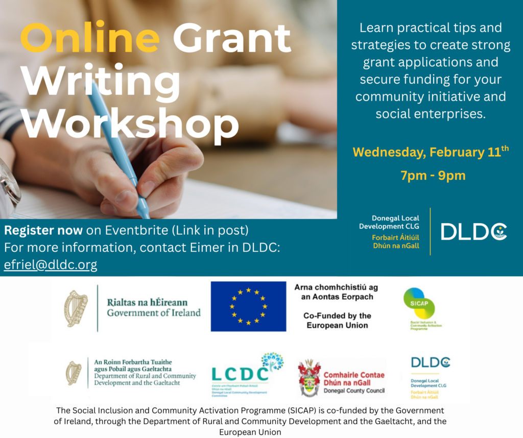 Learn tips and strategies to complete successful funding applications – join Donegal Local Development CLG’s Online Grant-Writing Workshop